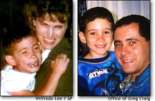 If you look at the pictures close you may notice when Elian was first taken from his house he had a nice close hair cut and appears to be missing one of his teeth. In the picture of him and his father, his hair cut is different (hair is longer) and he grew that tooth back in. Ahh nevermind these pics are such bad quality you can't tell, but you never know..