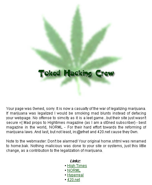 hacked by pro-pot advocates. Since I fully approve of both legalizing pot, and of web page