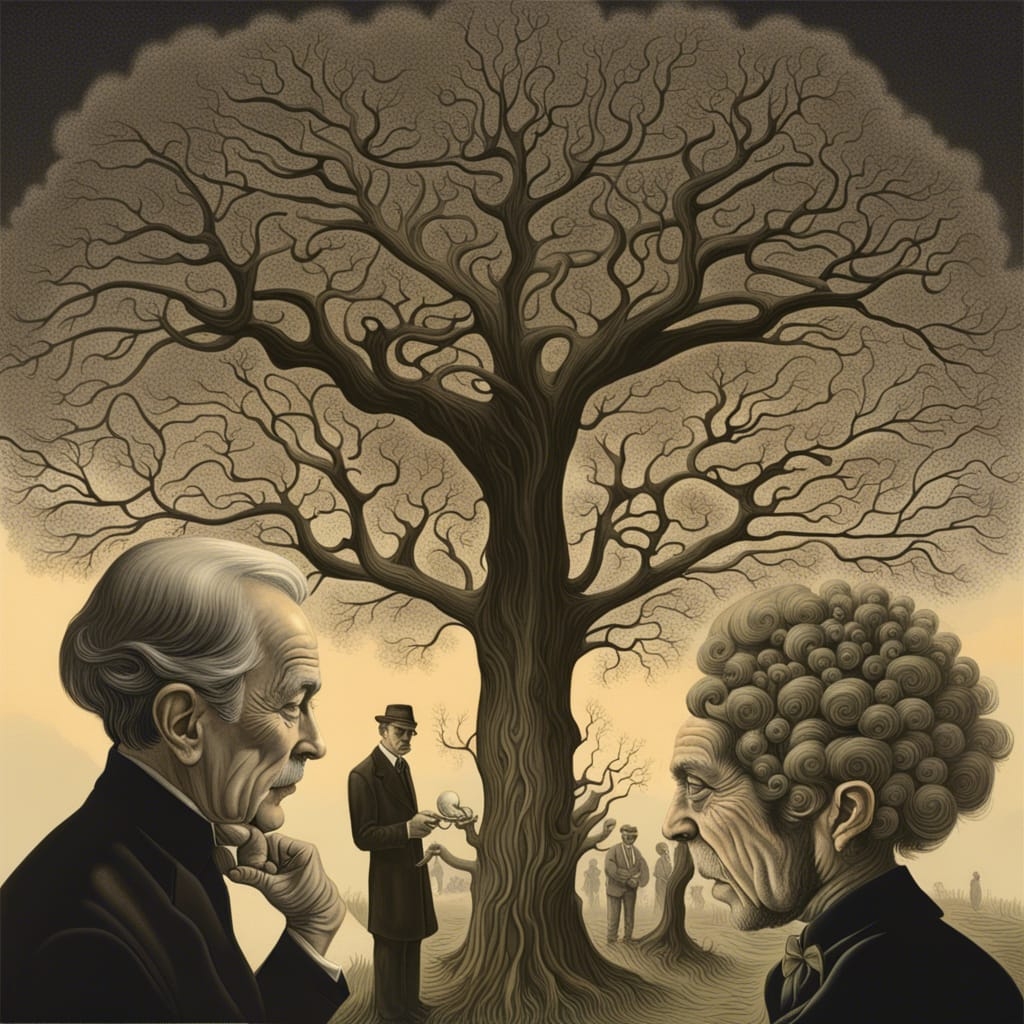 René Magritte, M. C. Escher, Austin Osman Spare All Get Together to Draw a Tree 3