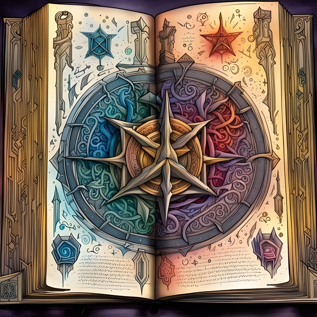 "detailed ink drawing | colorful glyphs and sigils on the pages of an open grimoire magic book of spells | Mark Brooks and Dan Mumford, comic book art, perfect, smooth"